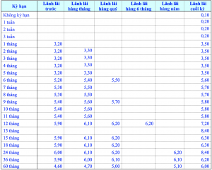 Cụ thể, lãi suất tiết kiệm tại kì hạn 1 tháng đến 5 tháng cùng không đổi và niêm yết ở mức 3,5%/năm.
