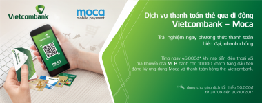 Khách hàng lần đầu tiên cài đặt ứng dụng Moca và sử dụng thẻ Vietcombank khi thực hiện giao dịch nạp tiền qua Moca, nhập mã “VCB” sẽ được giảm giá ngay 45.000 đồng.