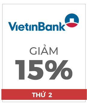 - Giảm 15% tối đá 100.000 khi thanh toán bằng thẻ tín dụng quốc tế Viettin Bank có đầu thẻ 418560,457271,498796,530581,356793 áp dụng cho đơn hàng từ 500.000 trở lên