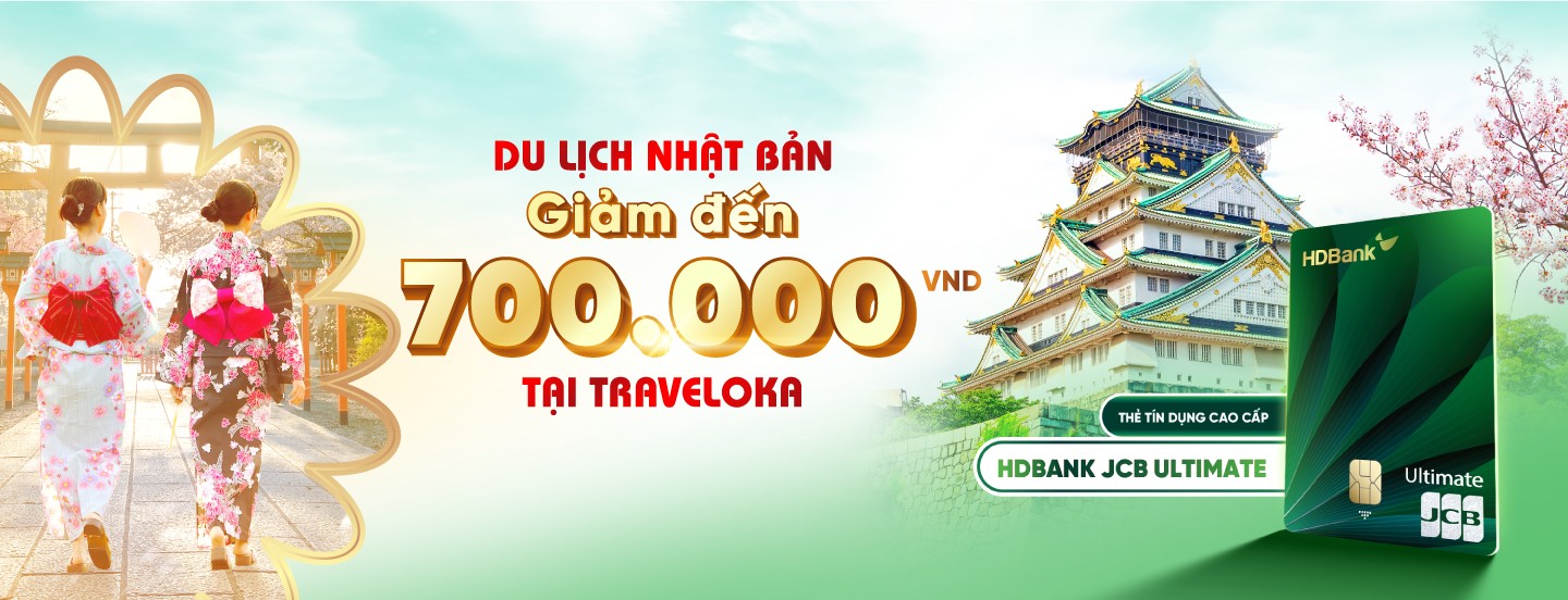 Chương trình ưu đãi giảm đến 700K tại Traveloka khi du lịch Nhật Bản cùng thẻ HDBank JCB Ultimate được áp dụng từ ngày 01/08/2023 đến ngày 31/10/2024.
