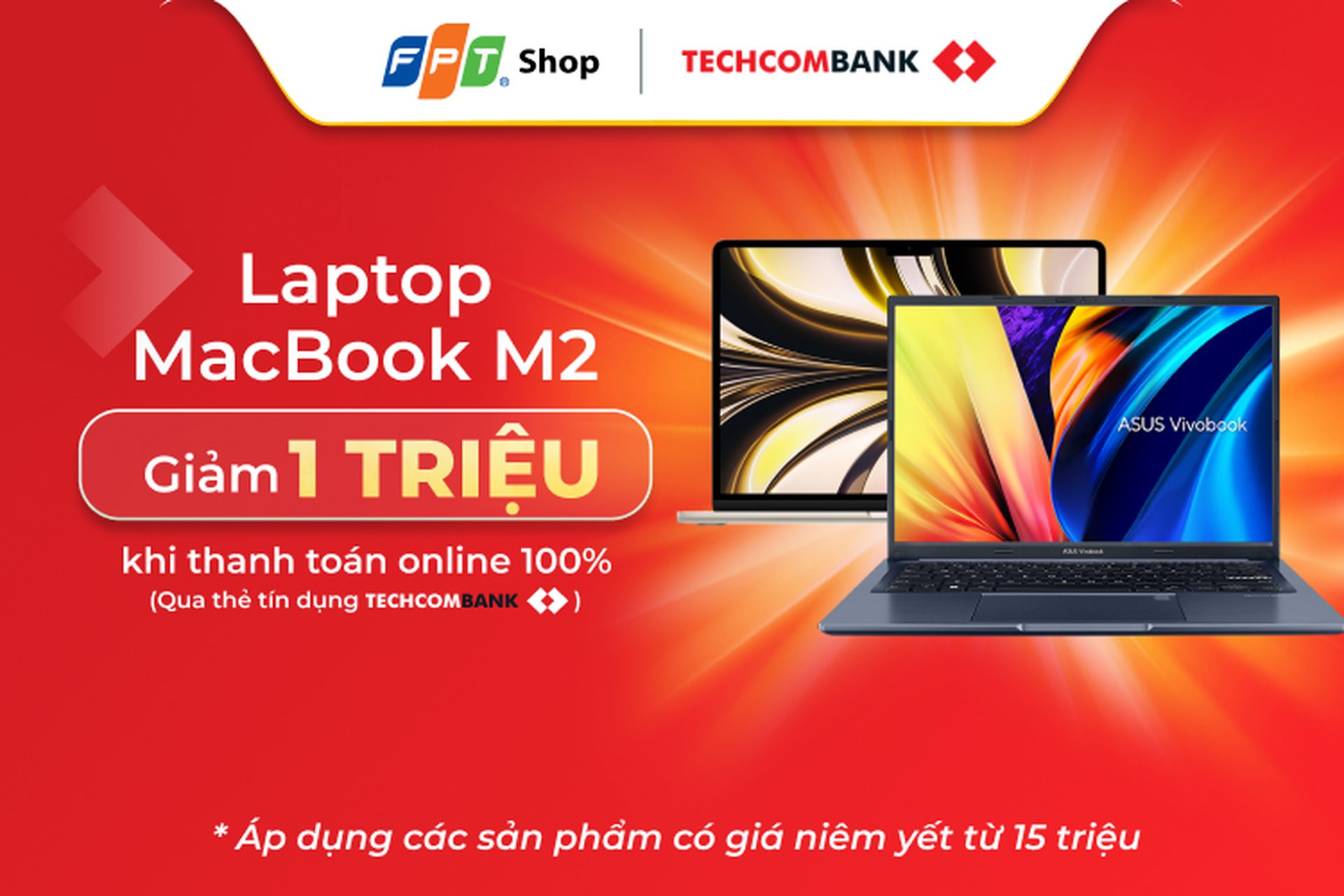 Khách hàng sẽ được hoàn tiền lên tới 1 triệu đồng khi mua tất cả các sản phẩm có giá trị từ 15,000,000 đồng và theo danh sách ưu đãi đính kèm tại website https://fptshop.com.vn/ khi thanh toán 100% bằng thẻ Ngân hàng.