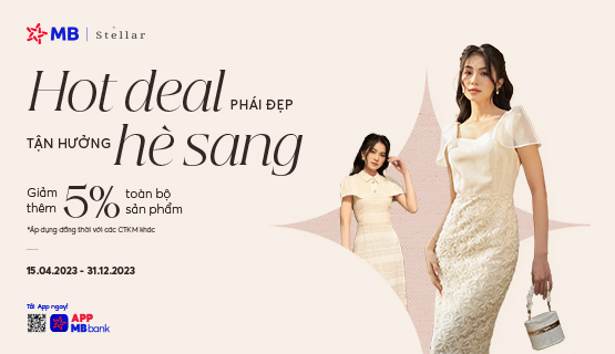 Từ ngày 15/04/2023 – 31/12/2023, Ngân hàng TMCP Quân Đội (MB) hợp tác cùng Đối tác Stellar mang đến chương trình ưu đãi “Hot deal phái đẹp – Tận hưởng hè sang” dành cho khách hàng MB