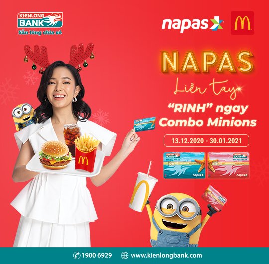 MC Donald tặng combo quà khi thanh toán bằng thẻ KienLong Bank