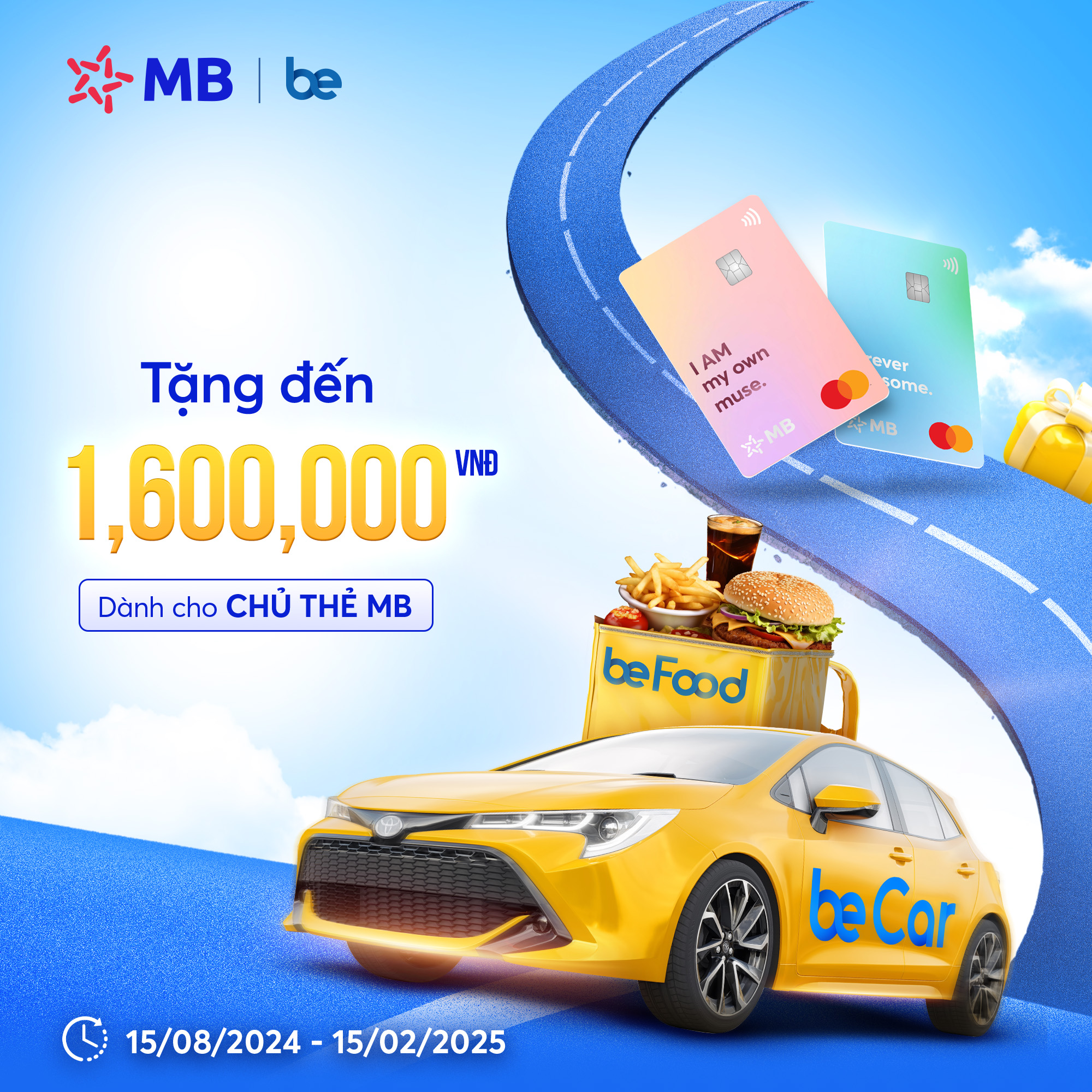 Từ 15/08/2024 đến ngày 15/02/2025, Ngân hàng TMCP Quân Đội (MB) hợp tác cùng Đối tác Be mang đến chương trình ưu đãi “Tặng đến 1,600,000 VNĐ dành cho chủ thẻ MB”.