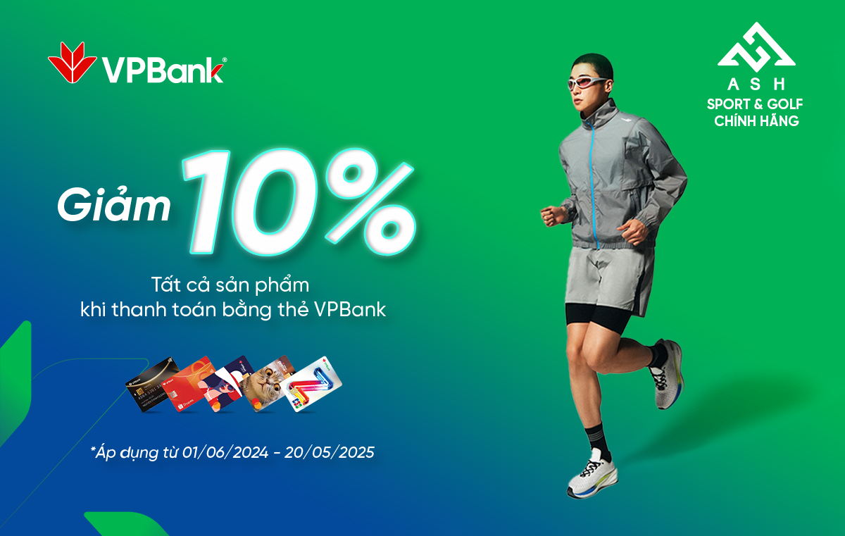 Chương trình ưu đãi 10% tất cả sản phẩm khi chi tiêu bằng thẻ VPBank tại ASH Việt Nam áp dụng từ ngày 01/06/2024 đến hết ngày 20/05/2025